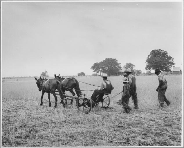 | Keywords: Harmony Community, Putnam County, Georgia.... Binders are not uncommon on large farms, but those who . . . - NARA - 521330.jpg Scope and content Full caption reads as follows Harmony Community Putnam County Georgia Binders are not uncommon on large farms but those who can handle all their small grains by hand continue to do so These African-American tenants have made a sort of mechanical cradle out of an old mowing machine with a piece of corrugated iron rigged behind the cutter bar to catch the fallen stalks One man walks along side with a stick and sweeps the standing grain back over the cutter while two others pick it out of the tin cradle and bind it General notes 521330 Local identifier 83-G-41017 Department of Agriculture Bureau of Agricultural Economics Division of Economic Information ca 1922 - ca 1953 NARA-Author Rusinow Irving Photographer 5307166 <br /> Still Picture Records Section Special Media Archives Services Division NWCS-S National Archives at College Park 8601 Adelphi Road College Park MD 20740-6001 1941 05 28 - 1941 06 01 Record group Record Group 83 Records of the Bureau of Agricultural Economics 1876 - 1959 Record group ARC 412 Photographic Prints Documenting Programs and Activities of the Bureau of Agricultural Economics and Predecessor Agencies compiled ca 1922 - ca 1947 documenting the period ca 1911 - ca 1947 Series ARC 521048 File unit File unit ARC Variant control numbers NAIL Control Number NWDNS-83-G-41017 Other versions <gallery> File Harmony_Community _Putnam_County _Georgia _Binders_are_not_uncommon_on_large_farms _but_those_who_ _ _ _-_NARA_-_521330 tif tif File Harmony_Community _Putnam_County _Georgia _Binders_are_not_uncommon_on_large_farms _but_those_who_ _ _ _-_NARA_-_521330 jpg jpg </gallery> NARA-cooperation PD-USGov Irving Rusinow Putnam County Georgia |