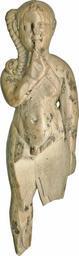 | Keywords: Harpocrates - Walters 71506.jpg This finely modeled figure of the young god Horus-the-Child called Harpocrates by the Greeks shows him as ususal sucking his finger He wears the typical juvenile sidelock but also has short curly hair indicated by fine incised lines Teh deep-set eyes reveal the influence of Greek art on late representations of this well-known Egyptian god The legs and left arm are damaged century 4 1 BC Greco-Roman hippopotamus ivory cm 0 82 2 1 12 accession number 71 506 12603 Said to be 22nd Dynasty found near Alexandria Dikran Kelekian New York and Paris date and mode of acquisition unknown Henry Walters city Baltimore Walters Art Museum Henry Walters Acquired by Henry Walters 1923 place of origin Egypt Walters Art Museum license Ancient Egyptian statuettes in the Walters Art Museum Statues of the Ptolemaic dynasty Statuettes of Harpocrates Media contributed by the Walters Art Museum needs category review |