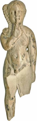 Keywords: Harpocrates - Walters 71506.jpg This finely modeled figure of the young god Horus-the-Child called Harpocrates by the Greeks shows him as ususal sucking his finger He wears the typical juvenile sidelock but also has short curly hair indicated by fine incised lines Teh deep-set eyes reveal the influence of Greek art on late representations of this well-known Egyptian god The legs and left arm are damaged century 4 1 BC Greco-Roman hippopotamus ivory cm 0 82 2 1 12 accession number 71 506 12603 Said to be 22nd Dynasty found near Alexandria Dikran Kelekian New York and Paris date and mode of acquisition unknown Henry Walters city Baltimore Walters Art Museum Henry Walters Acquired by Henry Walters 1923 place of origin Egypt Walters Art Museum license Ancient Egyptian statuettes in the Walters Art Museum Statues of the Ptolemaic dynasty Statuettes of Harpocrates Media contributed by the Walters Art Museum needs category review |