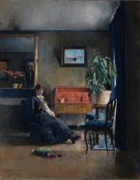 | Keywords: Harriet Backer - Blue Interior - Google Art Project.jpg commons artist commons date commons medium commons dimensions commons institution Institution Nasjonalgalleriet commons location commons references commons object_history commons exhibition_history commons credit_line commons inscriptions commons notes commons accession_number commons source commons permission commons other_versions <gallery> File Harriet Backer Blatt interior 1883 jpg </gallery> commons zoom core title Blue Interior core creator Harriet Backer core date dateCreated 1883 core format w66 x h84 cm core type Paintings core relation http //www digitaltmuseum no/things/nm/NMK-B/NG M 02582 core rights The National Museum of Art Architecture and Design core format medium Olje på lerret art artist_birth_place Holmestrand Vestfold Norge art artist_nationality Norwegian art artist_death_place Oslo fylke Oslo Norge art artist_date 1845/1932 c-0d5f498b customtext translated_title Blått interiør c-0d5f498b customtext technique Olje c-0d5f498b customtext latitude/longitude_artist_death_place 59 9138688 10 752245399999992 c-0d5f498b customtext latitude/longitude_artist_birth_place 59 4899189 10 315034999999966 google display_date 1883 google is_artproject TRUE google is_gigapixel FALSE google is_secured TRUE google street_view_asset/id XgECH-vAf3qvUw google street_view_level/id 4488346238719433535 google street_view_location 59 915992736816406 10 737234115600586 1 5399999618530273 P8KwX24tUzOcEBRUbdy6gQ google partner/id 000000000d5f498b google picasa_token fL2zXE-o3KVqeat8OAus2WiO8UE special url_id hgEgkxpd_4iyCA google partner/name The National Museum of Art Architecture and Design Norway special partner/name_no_lang The National Museum of Art Architecture and Design Norway 1932 Paintings by Harriet Backer in the Nasjonalgalleriet Google Art Project works by Harriet Backer Asta Nørregaard 1883 paintings in Norway 1883 paintings from Norway Oil on canvas paintings in Norway 19th-century paintings of building interiors Paintings of women of Norway Females in art in three-quarter views 19th-century paintings of sitting women at full length Genre paintings in Norway |