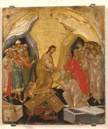 | Keywords: Harrowing of hell by M.Bathas (16th c.).jpg Η Εις Άδου Κάθοδος τέλη 16ου αιώνα 42 5x48 5εκ άρκος αθάς 1498-1578 Η εικόνα αυτή ακολουθεί το εικονογραφικό ρότυ ο της εικόνας αρ 6 του ουσείου Εδώ ο Χριστός δεν εριβάλλεται α ό δόξα και δεν υ άρχουν οι άγγελοι με τα σύμβολα του Πάθους Ο Αδάμ γονατίζει ε άνω στο σκέ ασμα της σαρκοφάγου ου είναι το οθετημένο διαγώνια ο Ιωάννης ο Πρόδρομος δείχνει τον Χριστό με μία θεατρική κίνηση και ο αλυσσοδεμένος Άδης βγάζει φωτιές α ό το στόμα του http //eib xanthi ilsp gr/gr/icons asp late 16th century Markos Bathas 1498-1578 PD-old Files uploaded by Shakko from various sources 16th-century icons of Greece Icons of the harrowing of hell |