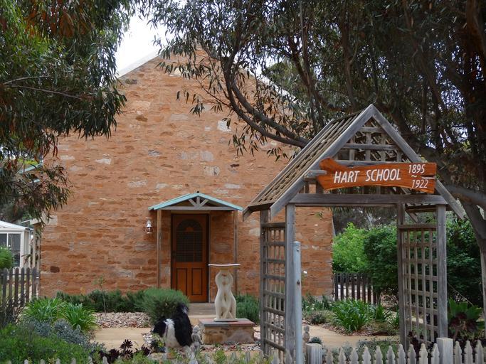 | Keywords: hart brinworth school church presbyterian brinkworth dog border collie bordercollie statue outdoor architecture building Hart. The Hundred of Hart, which was declared in 1864, was named after John Hart a state politician from 1857 to 1873. The Hundred was not surveyed until 1873 and farmers moved into the district after that time. A small settlement emerged at Hart and the only town to develop in the Hundred was at Brinkworth in 1894. The train line reached Hart in 1894 and the small tin shed which served as the siding and station closed in 1969. The story of the tiny settlement of Hart is inextricably linked with the Scottish born Robert McEwin. He migrated to Melbourne in the late 1830s and came to SA to visit his brother George McEwin at Glen Ewin estate near Houghton in 1851. Robert married Cecelia Lyell in Melbourne in 1852 and one of his sons, Alexander McEwin returned to settle in SA in 1884 by taking up land at Hart and east of Hart where the McEwin homestead was named Carlton Hill. This was a fortuitous time as the new railway extension from Blyth to Georgetown was being considered and the settlement of Hart was lucky enough to obtain a railway siding in 1892. One of Alexander’s sons was to later become Sir Lyell McEwin a state politician (1934-1975) and the government Health Minister for most of this time. Sir Lyell was educated at the small Hart state school and later at Balaklava. He used to catch the daily train at 8 am to Balaklava getting home on the 8:20 pm train at night – a very long day for any school boy. One of Sir Lyell McEwin’s sisters Annie, who married Harold Snow from Stirling died early in 1921 and the Presbyterian Church at Hart is a memorial church to her mainly funded by the Alexander McEwin and Harold Snow families. Annie Snow died in 1921 and the church opened in 1923. Presbyterian Church services at Hart had begun in 1896 in the district hall which was also used as the school room. From 1923 the services moved to the adjoining new Presbyterian Church on land donated by Neil Crawford next door. The Hart Presbyterian church opened in 1923 and finally closed in 1976. It is now a private residence. Next door to the church was the Hart hall. It was built of local limestone with lime mortar from the McEwin property lime burning kilns. This hall was erected in 1895. As soon as it was opened it was used for the church, the school and for country dances. In 1923 a new sandstone state school was opened near the Hart railway siding. The last classes of the Hart school were held in 1941. That 1923 stone school became the club rooms for the tennis courts. The “town” of Hart at the junction of six roads was declared in 1877 but no town ever really developed. The settlement did however have a school, an unofficial Post Office, a general store, the Presbyterian Church and the railway siding. The McEwin family built the general store and residence around 1908 as a community service. This still remains near the railway siding. One of the other early settlers of Hart was James Maitland who took up land in 1865 when the Hundred was established. He named his property Anama but later renamed it Anama Park. James Maitland later established a Clydesdale Horse stud on his Anama Park property and it became the longest operating Clydesdale Stud for many years. But as tractors took over ploughing the Clydesdales were no longer needed on farms. Charles Hawker had an Anama estate near Bungaree and that is still in the hands of members of the Hawker family. The little railway siding at Hart was originally known as Anama siding in the 1890s. The Post Office conducted in the general store in Hart was known as Anama Post Office until 1915. The Post Office closed in 1970. The general store closed a few years before the post service ended. Hart’s ongoing contribution to the state and to farming knowledge is the annual Hart Agricultural Field Day held in September of each year. The field days were established in 1982 and still operate with a round 700 attendees each year. Hart. The Hundred of Hart, which was declared in 1864, was named after John Hart a state politician from 1857 to 1873. The Hundred was not surveyed until 1873 and farmers moved into the district after that time. A small settlement emerged at Hart and the only town to develop in the Hundred was at Brinkworth in 1894. The train line reached Hart in 1894 and the small tin shed which served as the siding and station closed in 1969. The story of the tiny settlement of Hart is inextricably linked with the Scottish born Robert McEwin. He migrated to Melbourne in the late 1830s and came to SA to visit his brother George McEwin at Glen Ewin estate near Houghton in 1851. Robert married Cecelia Lyell in Melbourne in 1852 and one of his sons, Alexander McEwin returned to settle in SA in 1884 by taking up land at Hart and east of Hart where the McEwin homestead was named Carlton Hill. This was a fortuitous time as the new railway extension from Blyth to Georgetown was being considered and the settlement of Hart was lucky enough to obtain a railway siding in 1892. One of Alexander’s sons was to later become Sir Lyell McEwin a state politician (1934-1975) and the government Health Minister for most of this time. Sir Lyell was educated at the small Hart state school and later at Balaklava. He used to catch the daily train at 8 am to Balaklava getting home on the 8:20 pm train at night – a very long day for any school boy. One of Sir Lyell McEwin’s sisters Annie, who married Harold Snow from Stirling died early in 1921 and the Presbyterian Church at Hart is a memorial church to her mainly funded by the Alexander McEwin and Harold Snow families. Annie Snow died in 1921 and the church opened in 1923. Presbyterian Church services at Hart had begun in 1896 in the district hall which was also used as the school room. From 1923 the services moved to the adjoining new Presbyterian Church on land donated by Neil Crawfo