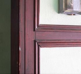 | Keywords: Hartington auditorium interior woodwork 1.JPG Hartington Nebraska Woodwork in lobby west side of frame and molding on south-facing door leading from upper entrance lobby into basketball court Note the thermostat at upper right; it can be seen on the longer shot at File Hartington auditorium lower lobby 03 face ESE JPG own Ammodramus 2010-11-25 Pictures by Ammodramus Taken with Panasonic Lumix DMC-FZ20 Hartington Nebraska city auditorium | ||||