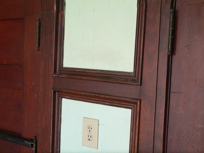 Keywords: Hartington auditorium interior woodwork 2.JPG Hartington Nebraska Woodwork in lobby door frames and molding between two doors at leading east from upper entrance lobby into basketball court A wider shot of the two doors is at File Hartington auditorium lower lobby 04 face E JPG own Ammodramus 2010-11-25 Pictures by Ammodramus Taken with Panasonic Lumix DMC-FZ20 Hartington Nebraska city auditorium |