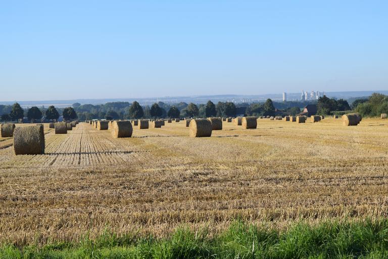 Keywords: harvest straw bales round bales agriculture field crops cement plant windräder