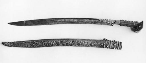 | Keywords: Hasan Agha - Sword ("Yataghan") and Scabbard - Walters 51428.jpg Of the various types of Islamic arms the sword or saber and dagger were the most prized by European and American collectors including Henry Walters These works were admired for their diverse shapes and materials and especially for their rich and intricate surface decoration century 19 Modern steel inlaid with gold blade ; silver filigree set with coral hilt ; silver filigree set with coral and niello scabbard scabbard cm 6 61 8 4 3 ; yataghan cm 7 69 8 8 accession number 51 428 28971 Henry Walters Baltimore date and mode of acquisition unknown Walters Art Museum Henry Walters Acquired by Henry Walters Again Arms and Armor Baltimore Museum of Art Baltimore 1940 place of origin Turkey Walters Art Museum license Weapons in the Walters Art Museum Islamic metal art Swordsmiths Swords of the 19th century Scabbards Yatagans Aghas of the Ottoman Empire |