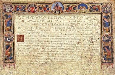 | Keywords: HasekuraRomanCitizenship.jpg Patent of Roman citizenship granted to Hasekura Tsunenaga 20 November 1615 68 5cm by 88 5cm http //www unesco org/new/en/communication-and-information/resources/multimedia/photo-galleries/preservation-of-documentary-heritage/photos-memory-of-the-world-register/2013/japan-and-spain-materials-related-to-the-keicho-era-mission-to-europe-japan-and-spain/ PD-old-100 Originally uploaded to Image HasekuraRomanCitizenship jpg by User PHG Transcription QVOD ˘LVDOVICVS ˘RENTIVS ˘VINCENTIVS ˘MVTVS DE ˘PAPAZVRRIS ˘IACOBVS ˘VELLIVS ˘ALMÆ ˘VRBIS ˘ CONSERVATORES DE ILLVST ˘<sup><small> IMO </small></sup> ET EXCELL ˘<sup><small> IMO </small></sup> <BIG>PHILLIPPO FRANCISCO</BIG> ˘FAXECVRA ˘ROCVYEMON ˘ROMANA ˘CI VITATE ˘DONANDO AD SENATVM ˘RETVLERE ˘<BIG>S ˘P ˘Q ˘R</BIG> ˘DE ˘EA ˘RE ˘ITA ˘FIERI ˘CENSVIT ˘ ---- QVOD IN VRBE ROMANA ANTIQVISSIMIS ETIAM HIIS REGVM TEMPORIBVS VSITATVM ET SEQVENTIBVS DEINDE ANNIS RESPVB CONSVLVIT NE NOSTRA QVIDEM ÆTAS OMISIT HESTEROS<ref>HESTEROS a misspelling of exteros based on Italian pronunciation </ref> NEMPE VIROS VIRTVTE SEV NOBILITATE INSIGNES AD HANC ALMAM VRBEM EX ORBE VNIVERSO CONFLVENTES <BIG>S P Q R </BIG> NON SOLVM BENIGNITER VERVM ETIAM MVNIFICENTER AMPLEXVS ILLOS MA GNITVDINE ROMANI NOMINIS DESVPER NATIVAM PROPRIAMQVE NOBILITATEM COHONESTANDO CIVITATE ROMANA DONAVIT VT VIRI VIRTVTE NOBILITATQVE PRÆSTANTES INTER ROMANOS CIVIS ADSCITI MAGNO REIPVB NOSTRÆ VSVI ATQVE ORNAMENTO FVISSENT VEL ESSE ALIQVANDO POSSENT <BIG>N</BIG>OS IGITVR ANTIQVISSIMI MORIS NOSTRVMQVE MAIORVM EXIMIA AVTHORITATE PERMOTI NON OMMIT TENDVM PVTAVIMVS INTER CIVES CAFRIN OSQVE ROMANOS ADSCIRE ILLVST <SUP><SMALL>IMVM </SMALL></SUP> ET EXCELL <SUP><SMALL>IMVM </SMALL></SUP> PHILIPPVM FRANCISCVM FAXECVRA ROCVYEMON EX CIVITATE SEV CVRIA SANDAI REGNI VOXV IN IAPPONE ORTVM CVM IPSE EX TAM LONGINQVIS ET REMOTISSIMIS REGIONIBVS AD HANC AL MAM VRBEM VENERIT <BIG>ORATOR</BIG> AD SANCTISSIMVM DOMINVM NOSTRVM <BIG>PAVLVM QVINTVM BVRGHESIVM</BIG> <BIG>ROMANVM PONTIFICEM MAXIMVM</BIG> PRO SERENISSIMO <BIG>IDATE MASAMVNE REGE VOXV</BIG> IN IMPERIO IAPPONI CO VT ROMANVM PONTIFICEM CATHOLICÆ ET VNIVERSALIS ECCLESIÆ <BIG>PASTOREM</BIG> TOTIVS ORBIS PARENTEM ET <BIG>IESV CHRISTI FILII DEI</BIG> <BIG>OMNIPOTENTIS VICARIVM</BIG> EA QVA DECET REVERENTIA VENERANDO AD ACCIPIENDAM DICTI REGIS AC REGNI TV TELAM PA TERNAMQVE CVRAM HORTARETVR EAPROPTER <BIG>S P Q R </BIG> VT CVM IPSO STRICTISSIMO AMORIS NEXV COLLIGETVR EVNDEM ILLV STRISSIMVM ET EXCELENTISSIMVM <BIG>PHILIPPVM FRANCISCVM FAXICVRA ROCVYEMON</BIG> AMPLISSIMO MVNERE <BIG>ROMA</BIG> <BIG>NAE CIVITATIS</BIG> DECORANDVM ET IN SENATOR ORDINEM MERITO COOPTANDVM CENSVIT <BIG>Q</BIG>VAM VOLVNTATEM AC SENTENTIAM SIN GVLARI OMNIVM CONSENSV AC LAETITIA COMPROBATAM PER SCRIBAS EIVSDEM SACRI SENATVS IN PVBLICAS L I TTERAS AD AETERNAM MEMORIAM REFERRE EIDEM <BIG>S P Q R </BIG> ITA PLACVIT VT BENEFICIVM HONOREMQVE NON MAGIS DARE QVAM ACCIPERE VIDERE TVR <BIG>A</BIG>NNO AB VR BE CONDITA MMCCCLXVI ET AB ORBE REDEMPTO <BIG>M</BIG> ˘DC ˘XV ˘ X II KAL ˘DECEMBRIS English Translation Because Luigi Renzo Vincenzo Muti-Papazurri and Giacomo Vellio Conservators of the Beloved City<ref> Conservator Almae Urbis seems to have been a common important title in this era Alma Urbs seems to usually be rendered Beloved City in English but alma actually means something more like nourishing bountiful or endowed with the qualities of a good parent http //www perseus tufts edu/cgi-bin/ptext doc Perseus 3Atext 3A1999 04 0059 3Aentry 3D 231976 I can find no information on these particular Conservators but multiple members of their families seem to have held the title in all three cases </ref> referred to the Senate as follows regarding the giving of citizenship to the Most Illustrious and Excellent Phillip Francis Faxecura Rokuyemon the Senate And People of Rome decreed that it should be made so regarding this matter <br> Because in most ancient city of Rome it has been common even in these<ref>The use of the word these is confusing it is clear that the words times of kings refer to the original Roman Kingdom despite the demonstrative Could HIIS be a misspelling for ex </ref> times of kings then in the subsequent years of the Republic it the Republic made it policy and not even our era has neglected it that the Senate and People of Rome embracing them not only kindly but even generously should them endow with Roman citizenship foreign men of particular virtue or nobility who come flocking together from throughout the entire world to this beloved city decorating them with the greatness of the Roman name in adition to their own native nobility; as men of particular virtue and nobility having been admitted among the citizens of Rome may have been or might someday be useful or glorious to our great Republic We therefore being moved by the excellent authority of this ancient custom of our ancestors thought that it should not be neglected among the citizens and cafrini<ref>Meaning unknown </ref> of Rome to admit the most illustrious and excellent man Philip Francis Faxecura Rokuyemon who originated in the city-state or capital city of Sandai in the kingdom of WĹŤshĹ« whereas he came from such distant and far-away lands to this Beloved City as the speaker to our Most Holy Lord Paul the Fifth Borghese The Supreme Pontiff of Rome on behalf of the most serene Idate Masamune the King of Woshu in the Japanese Empire in order to entreat the Pontiff of Rome and the Shepherd of the Universal Catholic Church the Parent of All The World and the Vicar of Jesus Christ son of All-Mighty God venerating him with all due reverence to take up the safety<ref>Possibly meaning salvation Or maybe just security sacrosanctiy </ref> and fatherly care of the aforementioned king and kingdom for which reason the Senate And People of Rome has decided that in order to be joined to him with the closest bond of love this most illustrious and excellent P