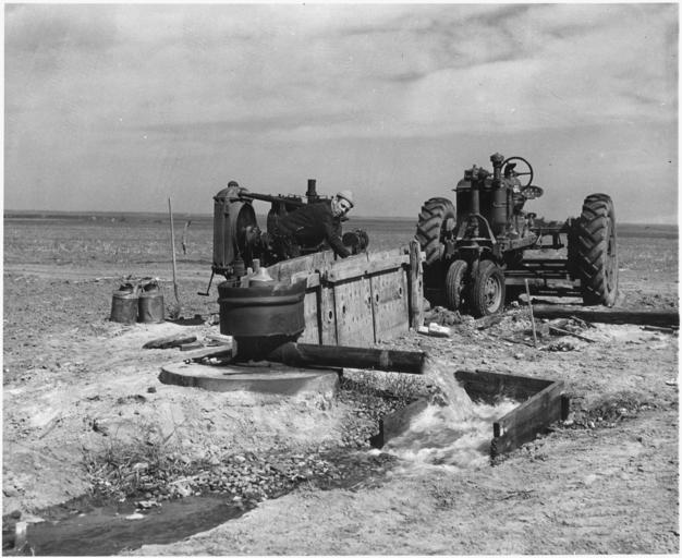 | Keywords: Haskell County, Kansas. Virtually every farm in the county is primarily dependent upon wheat, althou . . . - NARA - 522290.jpg Scope and content Full caption reads as follows Haskell County Kansas Virtually every farm in the county is primarily dependent upon wheat although a number of farmers plant sorghums and small grains for feed and sale raise feeders or sheep keep large flocks of hens and try in other ways to make part ot their income independent of the wheat crop These pictures were all taken in the early part of April when agricultural activities were at a low ebb There was Spring plowing and cultivating to be done on the land that was not planted to wheat planting of small grains harvesting of sorghums that had been left out over the Winter and the usual amount of wind erosion control work At this particular time the wheat was coming up well and there had been sufficient rain Prospects for making a crop were good but in this country good prospects don't mean much This picture shows one of the two irrigation wells in operation This one can flood thirty or forty acres of land Wells like these are very expensive and while they practically guarantee a crop of sorghums on the land they serve they cannot be used on the wheat land itself No well could possibly irrigate a tenth of the wheat land that a farmer would need to make a living General notes 522290 Local identifier 83-G-44121 Department of Agriculture Bureau of Agricultural Economics Division of Economic Information ca 1922 - ca 1953 NARA-Author Rusinow Irving Photographer 5307166 <br /> Still Picture Records Section Special Media Archives Services Division NWCS-S National Archives at College Park 8601 Adelphi Road College Park MD 20740-6001 1941-04 Record group Record Group 83 Records of the Bureau of Agricultural Economics 1876 - 1959 Record group ARC 412 Photographic Prints Documenting Programs and Activities of the Bureau of Agricultural Economics and Predecessor Agencies compiled ca 1922 - ca 1947 documenting the period ca 1911 - ca 1947 Series ARC 521048 File unit File unit ARC Variant control numbers NAIL Control Number NWDNS-83-G-44121 Other versions <gallery> File Haskell_County _Kansas _Virtually_every_farm_in_the_county_is_primarily_dependent_upon_wheat _althou_ _ _ _-_NARA_-_522290 tif tif File Haskell_County _Kansas _Virtually_every_farm_in_the_county_is_primarily_dependent_upon_wheat _althou_ _ _ _-_NARA_-_522290 jpg jpg </gallery> NARA-cooperation PD-USGov Irving Rusinow Haskell County Kansas Agriculture in Kansas Tractors in the United States Farmall tractors Water pumps in the United States |