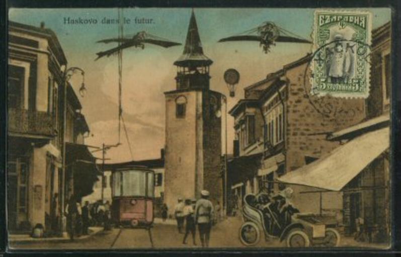 | Keywords: Haskovo Futurism.jpg Хасково в бъдещето бълга ска пощенска ка тичка от началото на 20 век scanned Bulgarian postcard beginning of the 20 C author Anonymous-EU PD-1923 Views of Haskovo Postcards of Bulgaria History of Haskovo Culture of Haskovo Cities of Bulgaria in art Churches in Haskovo Bell towers in Bulgaria Towers in Haskovo |