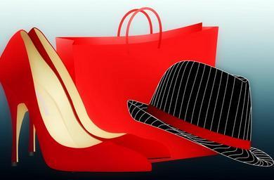 Keywords: hat clothing fedora shopping buy fashion elegant style stylish pumps high heeled shoe high heel shoe stilettos heels red shoes woman female bag shopping centre carryout bag carrying bag shopping bag