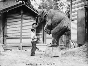 MAKE A MEME View Large Image „Hattie“ the elephant and Bill Snyder (02).jpg Hattie the elephant and Bill Snyder <br/><br/> Bain News Service publisher <br/>1 negative glass ; 5 x 7 in or smaller <br/>Notes Title from unverified data provided by the Bain News ...