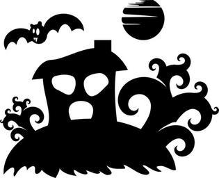 Keywords: haunted house halloween trees silhouette spooky bat moon
