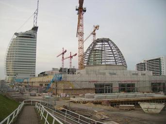 | Keywords: Havenwelten Baustelle Februar2008.jpg Blick auf die Baustelle der Havenwelten von Süden im Februar 2008 Links das Atlantic Hotel Sail City rechts das Einkaufszentrum Mediterraneo mit einer markanten Kuppel View on the Havenwelten in Bremerhaven Germany The object was still under construction in February 2008 On the left you see the Atlantic Hotel Sail City and on the right the cupola of the shopping centre Mediterraneo own 2008-02-03 Garitzko Havenwelten Construction sites in Bremerhaven 2008 in Bremerhaven |