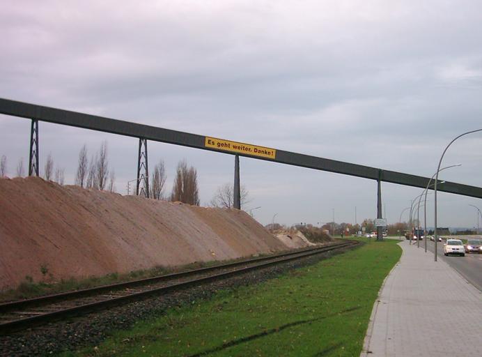 | Keywords: HAW weiter01.jpg Transportband des Hamburger Aluminium-Werks HAW über die Finkenwerder Straße in Hamburg-Finkenwerder Spruchband anläßlich des Verkaufs der HAW an die Trimet AG und geplanter Wiederinbetriebnahme Neuer Name des Unternehmens seit 2007 Trimet Aluminium AG Hamburg Band-conveyor Hamburger Aluminium-Werk HAW in Hamburg Germany own Own photo 2006-11 GeorgHH Own work all rights released Public domain Banners | ||||
