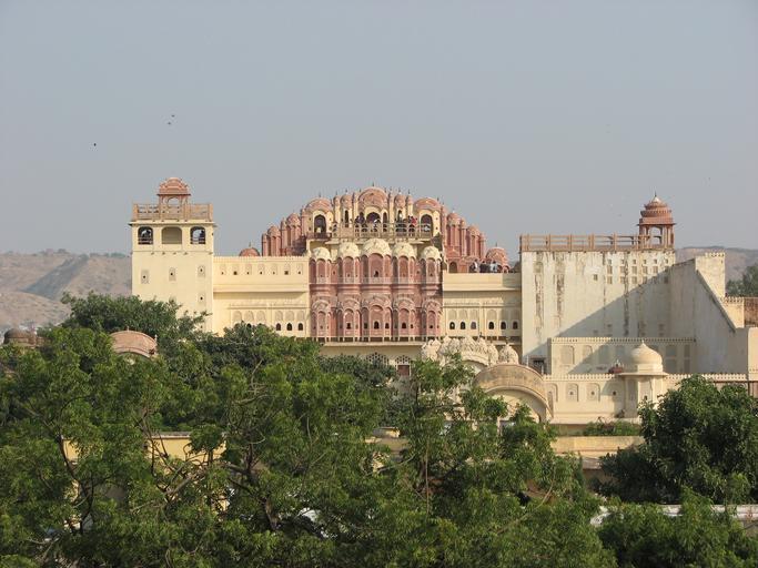 Keywords: Hawa Mahal.JPG Backside of Hawa Mahal Palace of the Winds seen from City Palace Jaipur India November 2006 2006-11-19 own assumed Janwiki West side of the Hawa Mahal