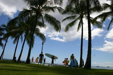 Keywords: hawaii beach surf ocean sea sport water sports leisure surfboard run palm trees holiday