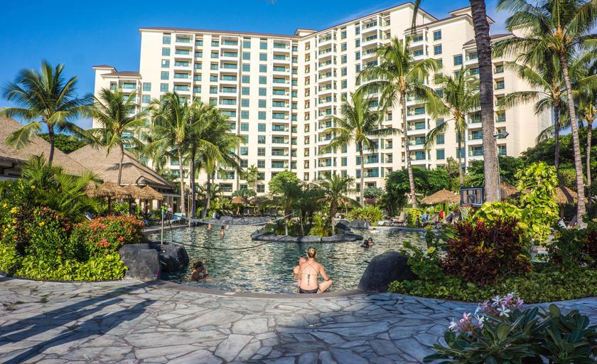 Keywords: hawaii oahu ko olina resort pool palm trees tropical people travel vacation lifestyle outdoor person summer water outside fun relaxing sky