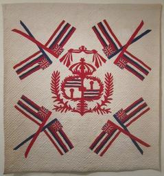 | Keywords: Hawaiian quilt, 'Ku'u Hae Aloha' (My Beloved Flag), 1938.JPG en Hawaiian quilt Ku ™u Hae Aloha My Beloved Flag unidentified maker 1938 cotton plain weave appliquéd using a variation of the fern stitch quilted with running stitches Honolulu Museum of Art own Hiart photo 2012 Flags in art Hawaiian quilts Hawaiian textiles in the Honolulu Museum of Art Flags of Hawaii Close-ups of patchwork / quilts Flags in museums Cc-zero | ||||