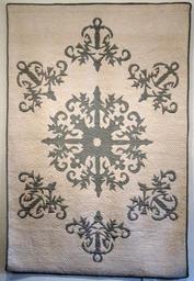 | Keywords: Hawaiian quilt, 'Niumalu' or Nawilili Beauty.JPG en Hawaiian quilt Niumalu or Nawilili Beauty designed by Mrs Montgomery 1930 cotton plain weave appliquéd quilted following the patern humu lau Honolulu Museum of Art own Hiart photo 2012 Hawaiian quilts Hawaiian textiles in the Honolulu Museum of Art Close-ups of patchwork / quilts Cc-zero |