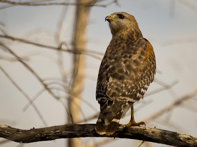 Keywords: hawk red shouldered wildlife perched raptor predator feather bird tree