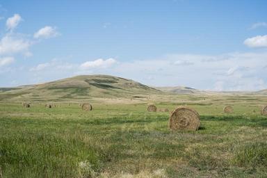 Keywords: hay bales grass fields rural country blue sky