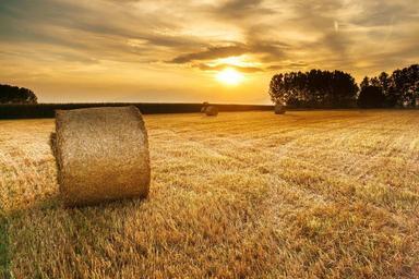 Keywords: hay field agriculture sunset landscape scenic colorful bales grass countryside farming