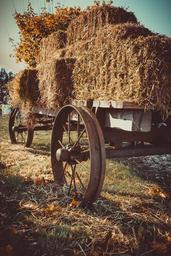Keywords: hay wagon cart farm wheel nature transport carriage old country brown rural grass field meadow harvest