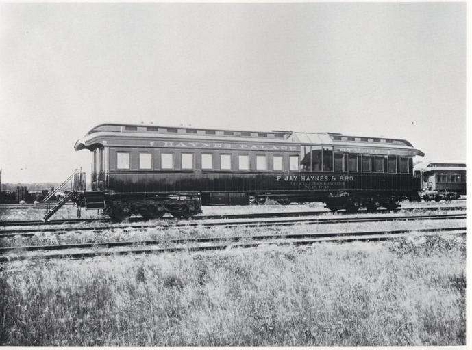 | Keywords: HaynesPalaceStudioCar-Haynes1891.jpg en Haynes Palace Studio Car Northern Pacific Railway 1891 Scanned from Northern Pacific Views Nolan 1983 Frank Jay Haynes Original Photo 1891 PD-old 1891 in rail transport in the United States Northern Pacific Railway Photographs by Frank Jay Haynes Rail passenger cars of the United States |