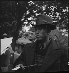 | Keywords: nara:arcid=537525 u.s. national archives usnationalarchives dorothea lange dorothealange japanese-american internment japaneseamericaninternment internment hayward california man hat b/w bw blackandwhite monochrome black and white Original Caption: Hayward, California. Farmer of Japanese ancestry is showing his identification card to a Wartime Civil Control Administration Control Dispatcher as he is about to board the special bus for Tanforan Assembly center. To read more about the photographic holdings of the National Archives, visit the "History Through the Camera Lens " blog post on the AOTUS Blog. U.S. National Archives’ Local Identifier: 210-G-C175 From:: Series: Central Photographic File of the War Relocation Authority, compiled 1942 - 1945 Created By:: Department of the Interior. War Relocation Authority. (02/16/1944 - 06/30/1946) Production Date: 05/08/1942 Photographer: Lange, Dorothea Persistent URL: arcweb.archives.gov/arc/action/ExternalIdSearch?id=537525 Repository: Still Picture Records Section, Special Media Archives Services Division (NWCS-S), National Archives at College Park, 8601 Adelphi Road, College Park, MD, 20740-6001. For information about ordering reproductions of photographs held by the Still Picture Unit, visit: www.archives.gov/research/order/still-pictures.html Reproductions may be ordered via an independent vendor. NARA maintains a list of vendors at www.archives.gov/research/order/vendors-photos-maps-dc.html Access Restrictions: Unrestricted Use Restrictions: Unrestricted Original Caption: Hayward, California. Farmer of Japanese ancestry is showing his identification card to a Wartime Civil Control Administration Control Dispatcher as he is about to board the special bus for Tanforan Assembly center. To read more about the photographic holdings of the National Archives, visit the "History Through the Camera Lens " blog post on the AOTUS Blog. U.S. National Archives’ Local Identifier: 210-G-C175 From:: Series: Central Photographic File of the War Relocation Authority, compiled 1942 - 1945 Created By:: Department of the Interior. War Relocation Authority. (02/16/1944 - 06/30/1946) Production Date: 05/08/1942 Photographer: Lange, Dorothea Persistent URL: arcweb.archives.gov/arc/action/ExternalIdSearch?id=537525 Repository: Still Picture Records Section, Special Media Archives Services Division (NWCS-S), National Archives at College Park, 8601 Adelphi Road, College Park, MD, 20740-6001. For information about ordering reproductions of photographs held by the Still Picture Unit, visit: www.archives.gov/research/order/still-pictures.html Reproductions may be ordered via an independent vendor. NARA maintains a list of vendors at www.archives.gov/research/order/vendors-photos-maps-dc.html Access Restrictions: Unrestricted Use Restrictions: Unrestricted |
