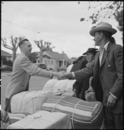 | Keywords: Hayward, California. Friends say good-bye as family of Japanese ancestry await evacuation bus. Bag . . . - NARA - 537514.jpg Scope and content The full caption for this photograph reads Hayward California Friends say good-bye as a family of Japanese ancestry await evacuation bus Baggage of evacuees mostly from small farms in Alameda County was piled on sidewalk Evacuees will be housed in War Relocation Authority centers for the duration General notes 537514 Local identifier 210-G-C164 Department of the Interior War Relocation Authority 02/16/1944 - 06/30/1946 NARA-Author Lange Dorothea 1895-1965 Photographer 1372774 <br /> Still Picture Records Section Special Media Archives Services Division NWCS-S National Archives at College Park 8601 Adelphi Road College Park MD 20740-6001 1942-05-08 Record group Record Group 210 Records of the War Relocation Authority 1941 - 1989 Record group ARC 537 Central Photographic File of the War Relocation Authority compiled 1942 - 1945 Series ARC 536000 File unit File unit ARC Variant control numbers NAIL Control Number NWDNS-210-G-C164 Other versions <gallery> File Hayward California Friends say good-bye as family of Japanese ancestry await evacuation bus Bag - NARA - 537514 tif tif </gallery> NARA-cooperation PD-USGov Dorothea Lange Japanese American internment processing in Hayward 1942 in California Men handshakes 20th-century men of the United States People of the United States in 1942 |