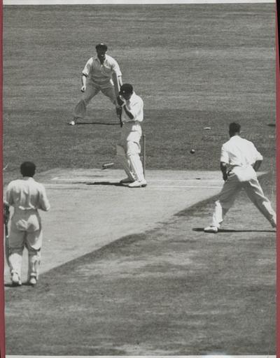 | Keywords: Hazare bowled Miller for 16 (2nd test, 1947, Sydney, Australia against India).jpeg en Hazare bowled Miller for 16 2nd test 1947 Sydney Australia against India 1947-12 http //search slv vic gov au/primo_library/libweb/action/dlDisplay do vid MAIN docId SLV_VOYAGER1790297 fn permalink Herald and Weekly Times other versions Custom license marker 2016 03 06 PD-Australia India national cricket team in Australia 1947 “48 Vijay Hazare Keith Miller | ||||