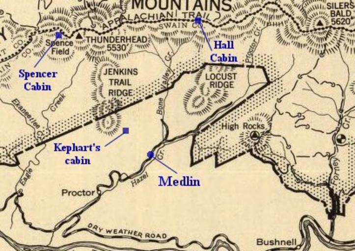 Keywords: Hazel-creek-nc-map1.jpg Map of the Hazel Creek valley in the Great Smoky Mountains of the U S state of North Carolina showing various locations mentioned by author Horace Kephart in his 1913 book Our Southern Highlanders This map has been modified mainly the addition of the locations in blue from a detailed portion of a National Park Service map drawn in 1940 before the creation of Fontana Lake and while much of the valley was still in private hands The locations in blue existed when Kephart was active in the area 1904-1907 but not necessarily in 1940 The Appalachian Trail built with Kephart's suggestions roughly follows the Tennessee-North Carolina border Approximate coordinates for these locations <br><br> Spencer cabin N35 56357° W83 73063° <br> Hall cabin N35 56624° W83 64190° <br> Siler's Meadow N35 56401° W83 56682° <br> Medlin N35 49465° W83 68889° <br> Kephart's cabin N35 50813° W83 70958° <br> Proctor N35 47382° W83 72161° <br> Bushnell N35 43715° W83 58521° <br> http //hdl loc gov/loc gmd/g3902g np000243 U S Library of Congress 1940 modified blue locations added May 2009 A J Reixach modified by Brian Stansberry PD-USGov Maps of the Great Smoky Mountains National Park Maps of North Carolina Hazel Creek North Carolina |
