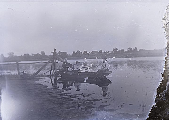 | Keywords: women men clothes lakes boats 1890s outdoor Two women and a man in a rowboat. One of a set of glass negatives associated with Herbert 'Burt' Rathbun (1861-1897). The negative has suffered damage to its right side. Two women and a man in a rowboat. One of a set of glass negatives associated with Herbert 'Burt' Rathbun (1861-1897). The negative has suffered damage to its right side. |