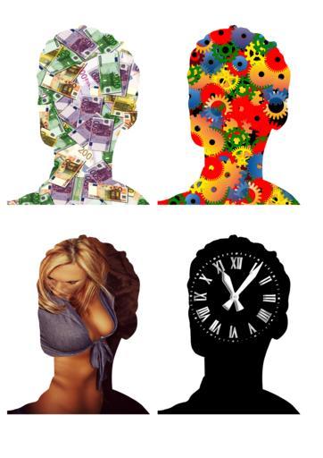 Keywords: head human silhouette think money euro seem gears sex woman bosom sexy clock time pointer values hustle and bustle stress structures ideas ideal sense importance