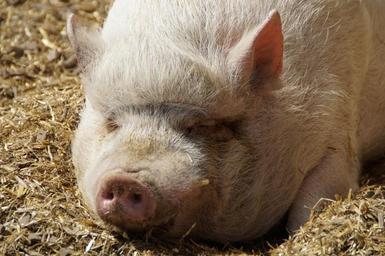 Keywords: head pig miniature pig piglet pot bellied pig farm thick face enjoy luxury doze dozing sun rest relaxed relax relaxation lazy
