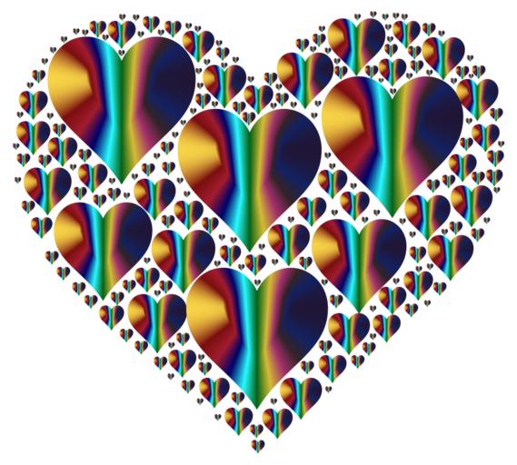 Keywords: heart hearts 3 love shape valentine romance passion fractal colorful prismatic chromatic rainbow shiny metallic art
