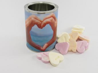 Keywords: heart hearts gift glance tin silver white metal paper container fill image cans background sheet store colorful pink yellow orange color colors