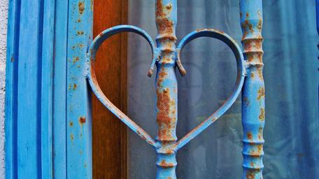 Keywords: heart love affection romance for you metal gate blue metal door blue gate decoration photo color little heart i love you simplicity road union
