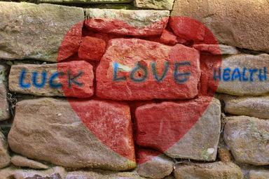 Keywords: heart love luck bless you stone wall romance background postcard greeting card