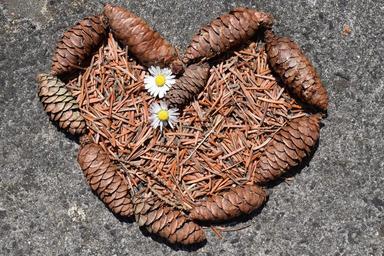 Keywords: heart love valentine's day background image tap pine cones pine needles needles romantic nature rustic trust feelings characters symbol mother's day