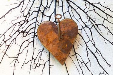 Keywords: heart metal rusted key love arts crafts hand labor romantic loving symbolic deco cheerful serene coral black door decorations