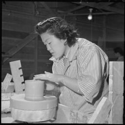 | Keywords: Heart Mountain Relocation Center, Heart Mountain, Wyoming. Minnie Negoro, an art student at the Uni . . . - NARA - 539263.tif Scope and content The full caption for this photograph reads Heart Mountain Relocation Center Heart Mountain Wyoming Minnie Negoro an art student at the University of California in Los Angeles before the evacuation of persons of Japanese ancestry from west coast defense areas is taking up the art of the potters wheel at the Heart Mountain Relocation Center Ceramics Plant where dishes and other pottery products for this and every other relocation center will be made General notes 539263 Local identifier 210-G-E708 Department of the Interior War Relocation Authority 02/16/1944 - 06/30/1946 NARA-Author Parker Tom Photographer 4682167 <br /> Still Picture Records Section Special Media Archives Services Division NWCS-S National Archives at College Park 8601 Adelphi Road College Park MD 20740-6001 1943-01-12 Record group Record Group 210 Records of the War Relocation Authority 1941 - 1989 Record group ARC 537 Central Photographic File of the War Relocation Authority compiled 1942 - 1945 Series ARC 536000 File unit File unit ARC Variant control numbers NAIL Control Number NWDNS-210-G-E708 yes Other versions <gallery> File Heart_Mountain_Relocation_Center _Heart_Mountain _Wyoming _Minnie_Negoro _an_art_student_at_the_Uni_ _ _ _-_NARA_-_539263 tif tif File Heart_Mountain_Relocation_Center _Heart_Mountain _Wyoming _Minnie_Negoro _an_art_student_at_the_Uni_ _ _ _-_NARA_-_539263 jpg jpg </gallery> NARA-cooperation PD-USGov Heart Mountain War Relocation Center NARA TIF images with categorized JPGs |