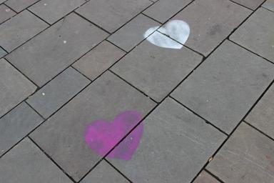 Keywords: heart patch street art love white pink stones lines detail city art structure