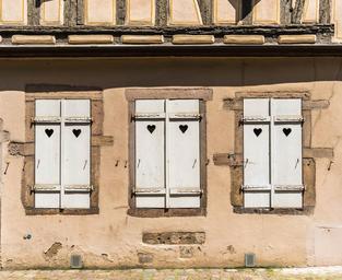 Keywords: heart shutter facade nostalgia home old protection old house truss architecture wood colmar france alsace