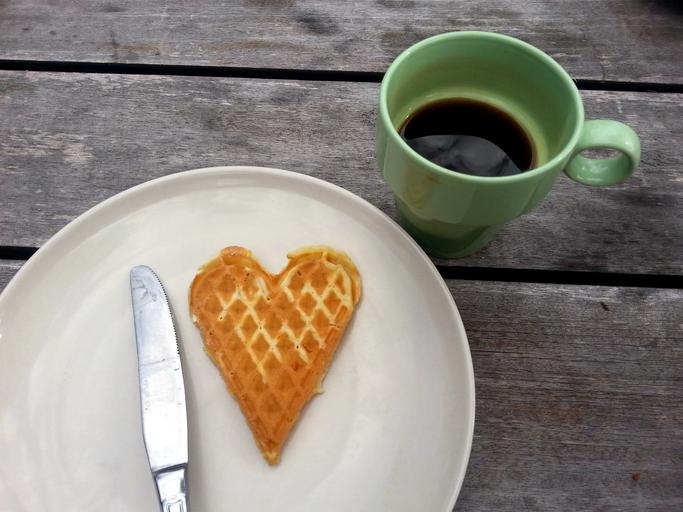 | Keywords: heart waffle breakfast love dessert food coffee black cafe coffee shop plate cup mug knife table pancakes single eating drinking leisure wooden beverage hungry calorie diet healthy nutrition snack weight junk sugar temptation sweet pastry dieting meal bite |