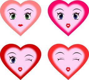 | Keywords: hearts faces expressions emotions love symbols signs pink red lighter darker shades colorful colors four sets collection group smileys shapes romance romantic lovers couples valentines happy surprised curious eyes closed one eye closed opened eyes looking |
