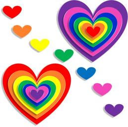 Keywords: hearts love 3d valentine's day february romance shape design romantic red orange yellow green blue indigo violet purple pattern symbol icon equality decorative emotion color rainbow spectrum holiday celebrate element