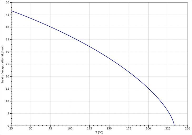 | Keywords: Heat of evaporation tert-butanol.svg en Heat of evaporation of tert -butanol - temperature dependence de Verdampfungswärme von tert -Butanol - Temperaturfunktion own Steffen 962 2011-10-02 calculated according/berechnet nach Δ<sub>V</sub>H<sup>0</sup> A·exp ˆ’a·T<sub>r</sub> 1 ˆ’T<sub>r</sub> <sup>β</sup> Δ<sub>V</sub>H<sup>0</sup> in kJ/mol T<sub>r</sub> T/T<sub>c</sub> reduzierte Temperatur mit A 69 08 kJ/mol a -0 3583 β 0 678 und T<sub>c</sub> 506 2 K V Majer V Svoboda Enthalpies of Vaporization of Organic Compounds A Critical Review and Data Compilation Blackwell Scientific Publications Oxford 1985 300 Cc-zero Tert-butanol Heat of evaporation |