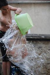 Keywords: heatwave water bucket ice bucket wet costs freshness surprise child game frozen water