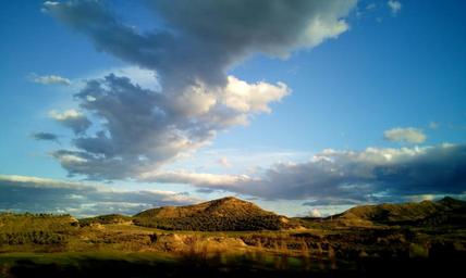Keywords: heaven clouds landscape rays sunset field mountain nature view mountain road